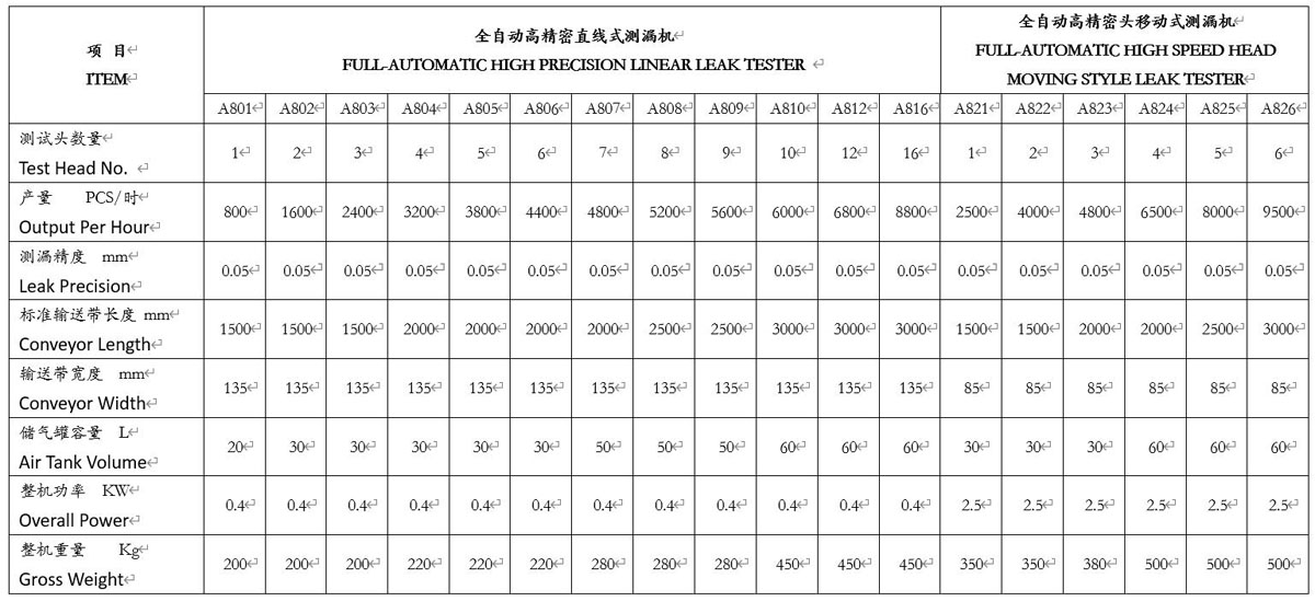 測漏機主要特征: